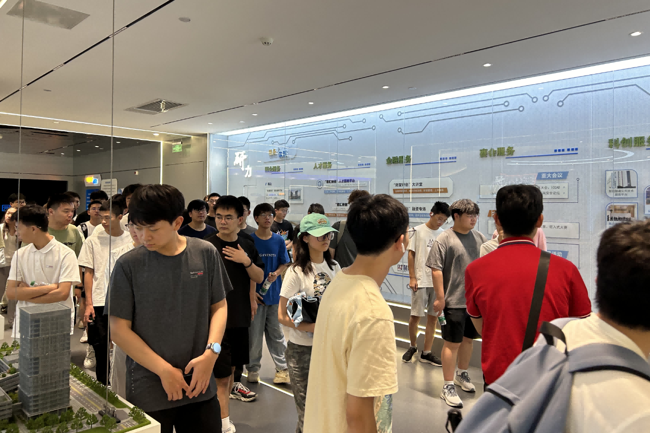 在专业讲解员的带领下,学员们第一时间深入分析了研创园的整体科技布局。“研创园作为南京江北新区科技创新的核心区域,”讲解员介绍道,“致力于构建以大数据、云计算、人工智能为核心的数字生态系统,吸引并孵化了一大批高新技术企业,形成了涵盖信息技术、大数据、人工智能、云计算、集成电路、智能研发等多个领域的产业集群。”随着讲解的深入,学员们被园区前瞻性的规划和深厚的科技创新底蕴所震撼。