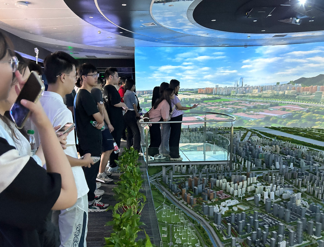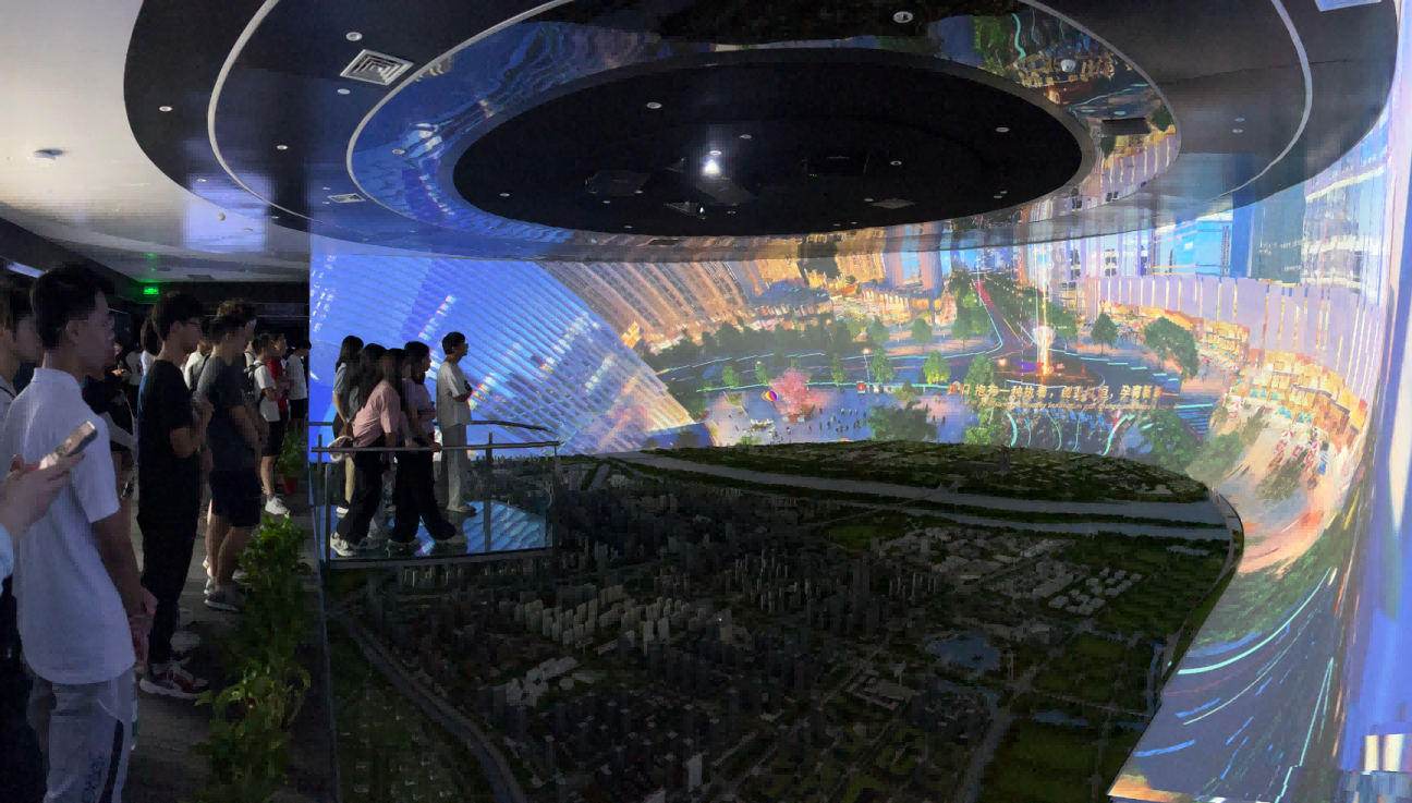 园区内现代建筑群错落有致,每一砖一瓦都蕴含着创新和科技的基因。evo真人视讯科技IT菁英暑期实训营的学员们怀揣着对科技的无限憧憬步入研创园展厅。展厅内部设计充满科技感,一块块巨大的模型和显示屏映入眼帘,生动展现了研创园的科技规划,以及从梦想走向现实的开展历程。