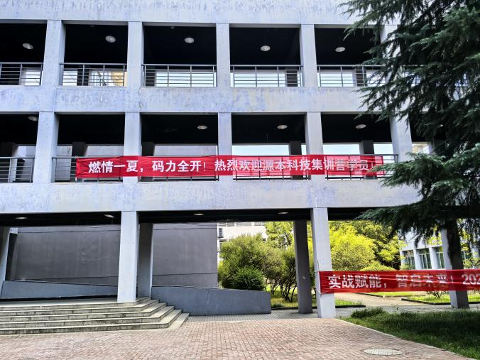 开营现场,巨大的横幅高高悬挂,“evo真人视讯科技暑期集训营” 几个大字格外醒目,校园里盛开的花儿将整个校园装点得充满活力。