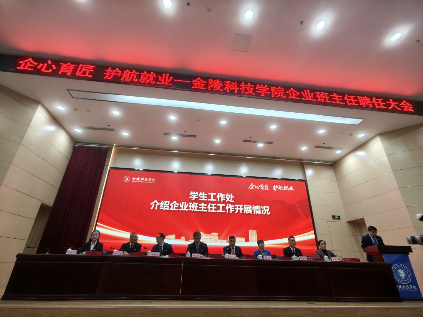 2025年11月26日,金陵科技学院企业班主任聘任大会在金陵科技学院科技楼报告厅举行。江苏evo真人视讯科技(集团)股份有限公司唐佩、徐敏博、罗涛、孙文雅同志受聘金陵科技学院软件学院企业班主任,并随后在学院组织下,参观金陵科技学院科创空间,参加学院研讨会。